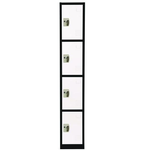 Steel Storage Locker, 4 Compartment, 12 x 12 x 72, Black Body/White Doors