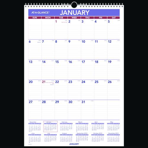 Move-A-Page Three-Month Wall Calendar, 12 x 27, White/Red/Blue Sheets, 15-Month: Dec 2024 to Feb 2026