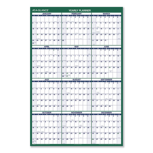 Vertical Erasable Wall Planner, 32 x 48, White/Green Sheets, 12-Month (Jan to Dec): 2025