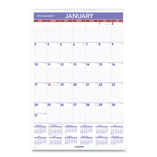 Monthly Wall Calendar with Ruled Daily Blocks, 20 x 30, White Sheets, 12-Month (Jan to Dec): 2025