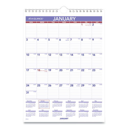 Monthly Wall Calendar with Ruled Daily Blocks, 8 x 11, White Sheets, 12-Month (Jan to Dec): 2025