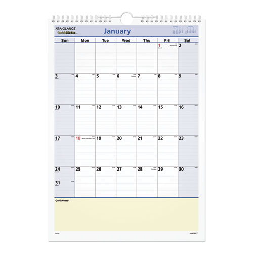 QuickNotes Wall Calendar, 12 x 17, White/Blue/Yellow Sheets, 12-Month (Jan to Dec): 2025