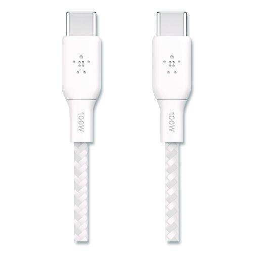 BOOST CHARGE Braided USB-C to USB-C Cable, 100 W Power Delivery, 6.6 ft, White, 2/Pack