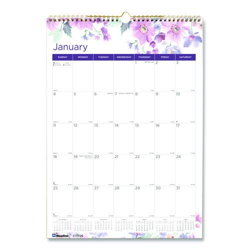 12-Month Colorful Wall Calendar, Floral Artwork, 12 x 17, White Sheets, 12-Month (Jan to Dec): 2025