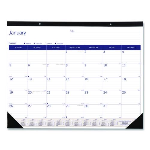 DuraGlobe Monthly Desk Pad Calendar, 22 x 17, White/Blue/Gray Sheets, Black Binding/Corners, 12-Month (Jan to Dec): 2025