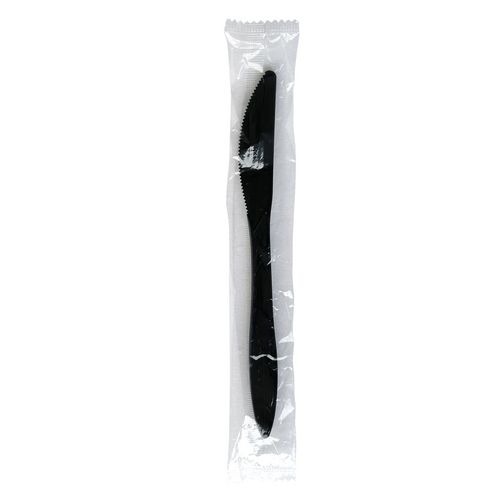 Mediumweight Wrapped Polypropylene Cutlery, Knife, Plastic, Black, 1,000/Carton
