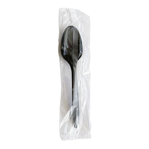 Mediumweight Polypropylene Cutlery, Individually Wrapped, Spoon, Plastic, Black, 1,000/Carton