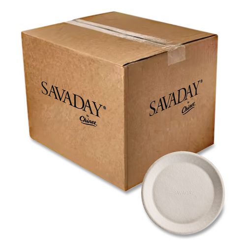 Savaday Molded Fiber Plates, Paper, 10″ dia, Cream, 500/Carton
