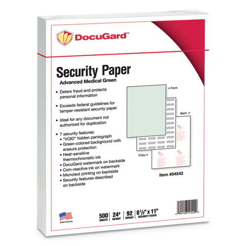 Medical Security Papers, 24 lb Bond Weight, 8.5 x 11, Green, 500/Ream