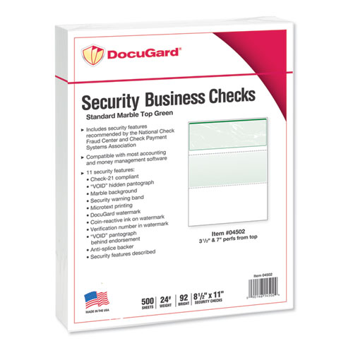 Security Business Checks, 11 Features, 8.5 X 11, Blue Marble Top, 500/ream