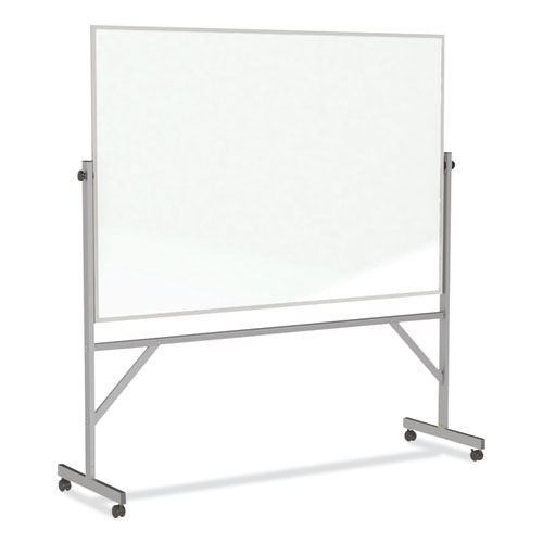 Reversible Magnetic Porcelain Whiteboard with Aluminum Frame, 53.25″ x 72.25″, White Surface, Satin Aluminum Frame