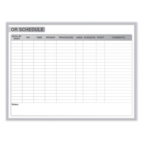 OR Schedule Magnetic Whiteboard, Operating Room Scheduling Chart, 48.5″ x 36.5″, White/Gray Surface, Satin Aluminum Frame