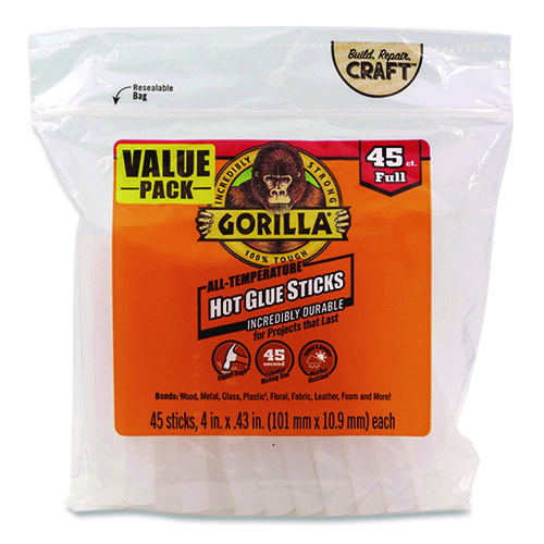 Hot Glue Sticks, 0.43″ Dia X 4″, Dries Clear, 45/pack