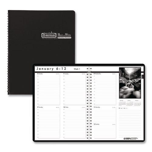 Recycled Monthly Weekly 7 Day Planner, 8.75 x 6.88, Black Cover, 12-Month (Jan to Dec): 2025
