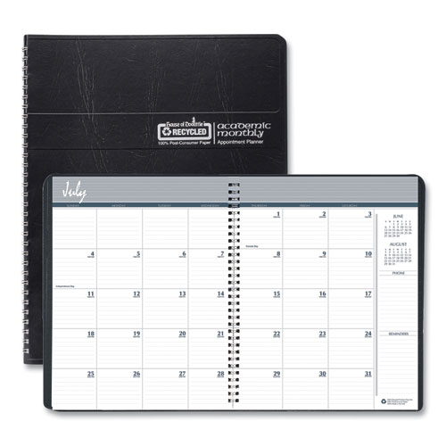 Academic Year 14-Month Recycled Ruled Monthly Planner, 11 x 8.5, Black Cover, 14-Month: July 2025 to Aug 2026