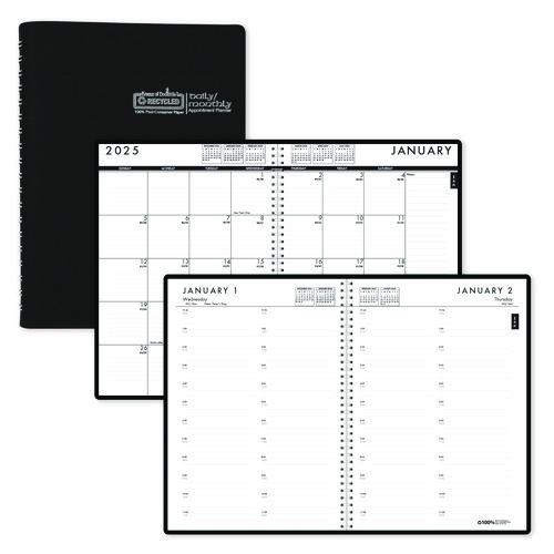 24/7 Recycled Daily Appointment Book/Monthly Planner, 10 x 7, Black Cover, 12-Month (Jan to Dec): 2025