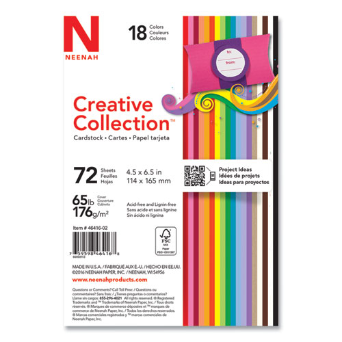 Creative Collection Premium Cardstock, 65 lb Cover Weight, 4.5 x 6.5, Assorted Starter Pack, 72/Pack