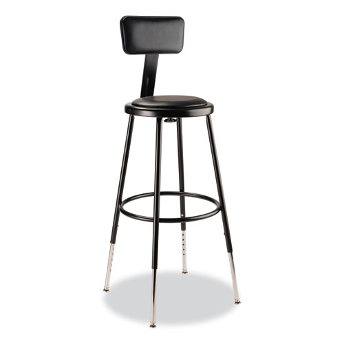 6400 Series Height Adj Heavy Duty Vinyl Steel Stool w/Backrest, Supports 300 lb, 25″-33″ Seat Ht, Black