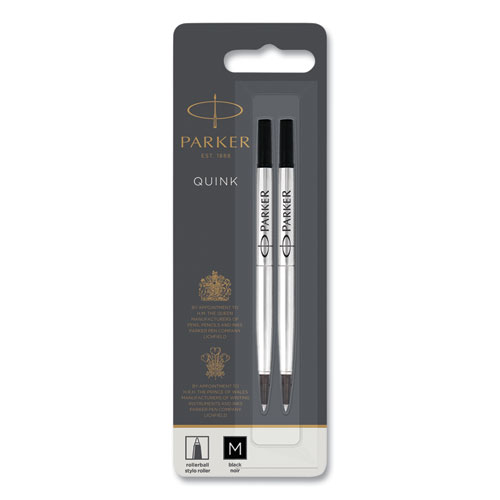 Quink Refill for Parker Rollerball Pen, Medium Tip, Black Ink, 2/Pack