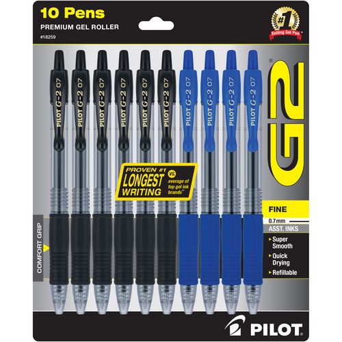 G2 Premium Gel Pen, Retractable, Fine 0.7 mm, Assorted Ink and Barrel Colors, 10/Pack