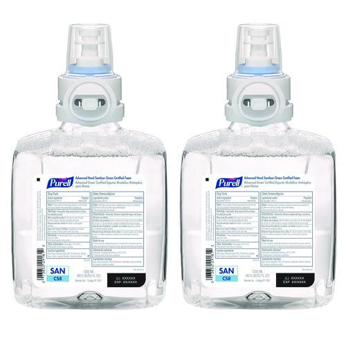 Advanced Hand Sanitizer Green Certified Foam Refill, For CS8 Dispensers, 1,200 mL, Fragrance-Free, 2/Carton
