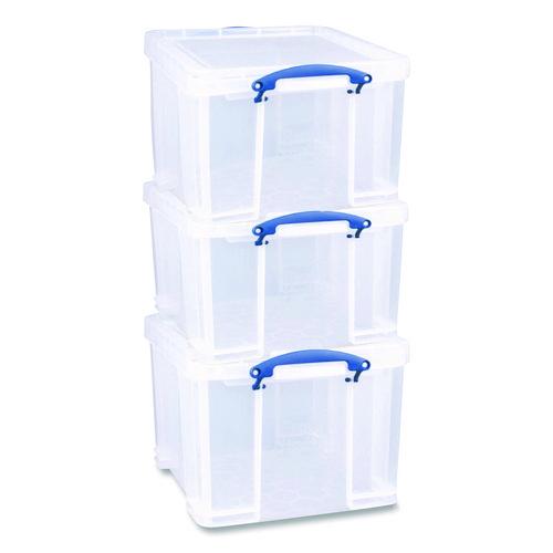 Snap-Lid Storage Bin, 8.45 Gal, 14″ X 18″ X 12.25″, Clear/blue, 3/pack