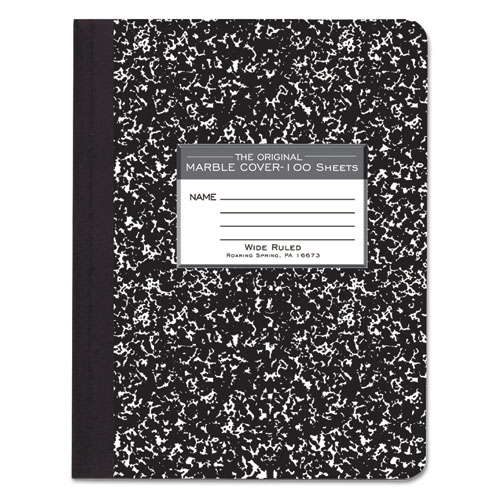 Hardcover Marble Composition Book, Wide/Legal Rule, Black Marble Cover, (100) 9.75 x 7.5 Sheets, 12/Carton