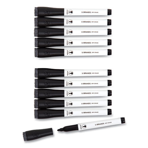 Medium Point Low-Odor Dry-Erase Markers With Erasers, Medium Bullet Tip, Black, Dozen