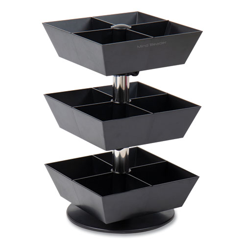 Anchor Collection 3-Tier 12-Compartment Tea and Condiment Carousel Countertop Organizer, 6.75 x 6.75 x 11.5, Black