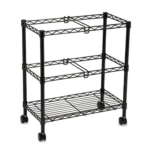 Two-Tier Rolling File Cart, Metal, 3 Bins, 25.75″ x 14″ x 29.75″, Black