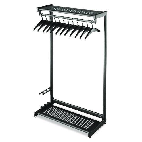 Single-Sided Rack with Two Shelves, 12 Hangers, Steel, 48w x 18.5d x 61.5h, Black