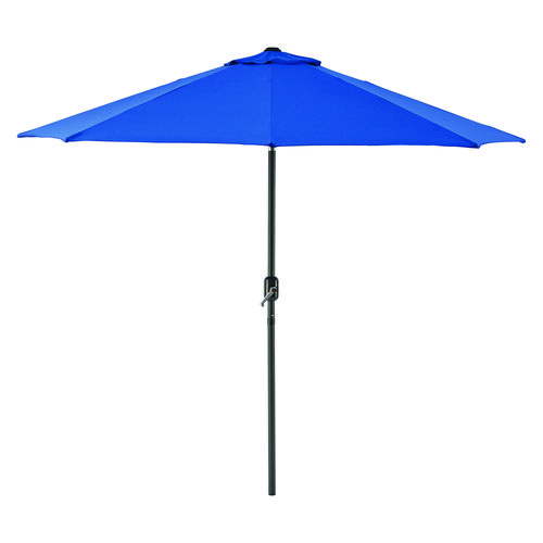Outdoor Umbrella with Tilt Mechanism, 102″ Span, 94″ Long, Blue Canopy, Black Handle