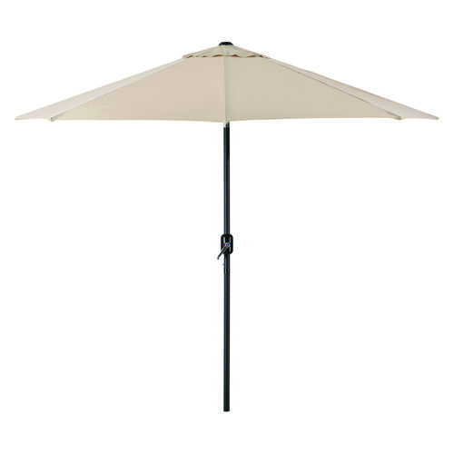 Outdoor Umbrella with Tilt Mechanism, 102″ Span, 94″ Long, Tan Canopy, Black Handle