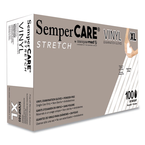 Stretch Vinyl Examination Gloves, Powder-Free, X-Large, 5 mil Thick, 9.45″ Long, Cream, 100/Box