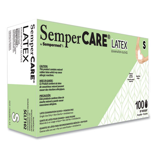 Latex Examination Gloves, Powder-Free, Small, 5 mil Thick, 9.45″ Long, Cream, 100/Box