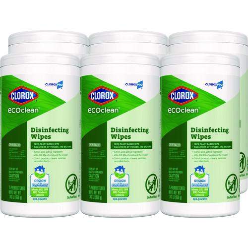 CloroxPro EcoClean Disinfecting Wipes, 1-Ply, 8 x 7, Unscented, White, 75 Count, 6/Carton