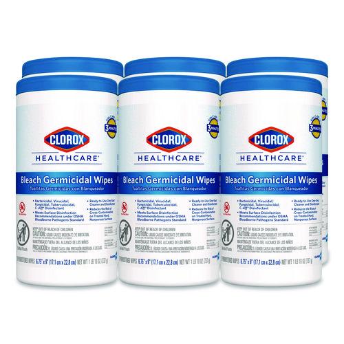 Bleach Germicidal Wipes, 1-Ply, 6.75 x 9, Unscented, White, 70/Canister, 6 Canisters/Carton