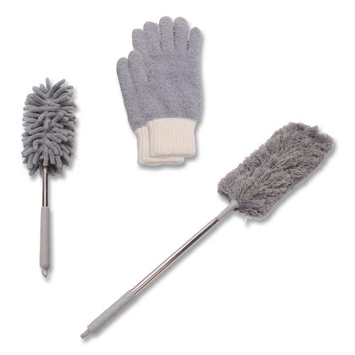 Dusting Set, Feather Duster, Dusting Wand, 2 Gloves, Gray