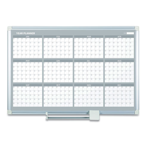 Magnetic Dry Erase Calendar Board, 12-Month Planning/Scheduling, 36″ x 24″, White Surface, Satin Aluminum Frame