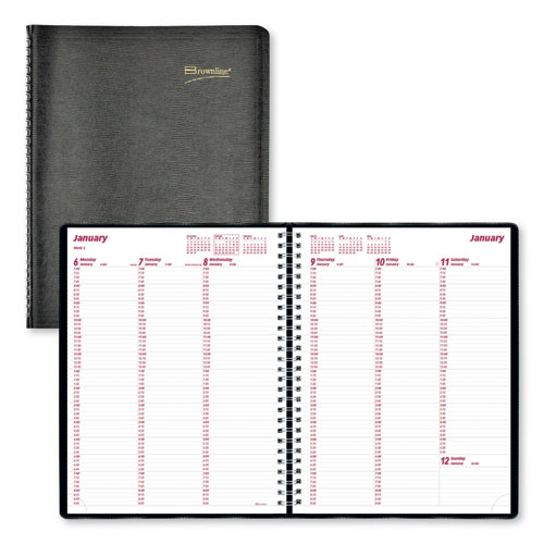 CoilPro Weekly Appointment Book in Columnar Format, 11 x 8.5, Black Lizard-Look Cover, 12-Month (Jan to Dec): 2025