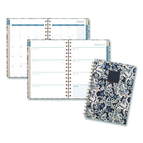 Elizabeth Weekly/Monthly Planner, 8.5 x 5.5, Floral Artwork, Blue Cover, 12-Month (Jan-Dec): 2026