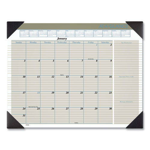 Two-Color Desk Pad, 22 x 17, White Sheets, Black Binding, Clear Corners, 12-Month (Jan to Dec): 2025