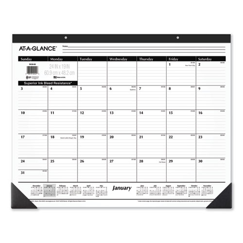 Desk Pad, 22 x 17, White Sheets, Black Binding, Black Corners, 12-Month (Jan to Dec): 2025