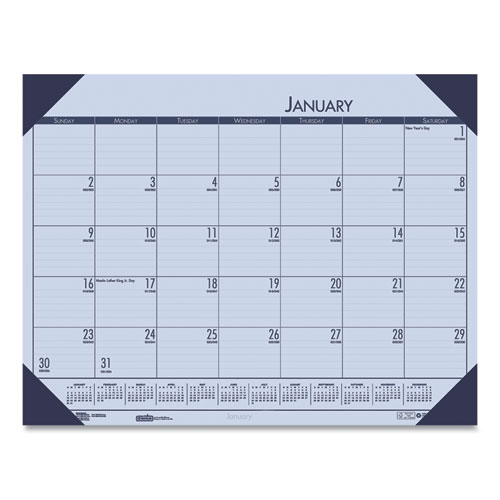 Recycled Contempo Desk Pad Calendar, 22 x 17, White/Blue Sheets, Blue Binding, Blue Corners, 12-Month (Jan to Dec): 2025