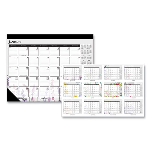 Recycled Desk Pad Calendar, Wild Flowers Artwork, 22 x 17, White Sheets, Black Binding/Corners,12-Month (Jan-Dec): 2025