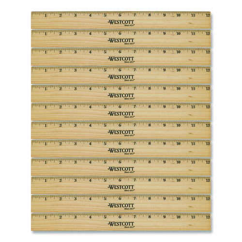 Beveled Wood Ruler, Standard, 12″ Long, Natural Hardwood, 12/pack