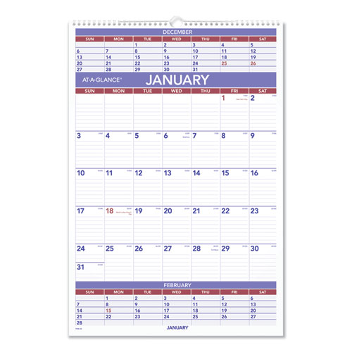 Vertical/Horizontal Wall Calendar, 24 x 36, White/Blue/Red Sheets, 12-Month (Jan to Dec): 2025