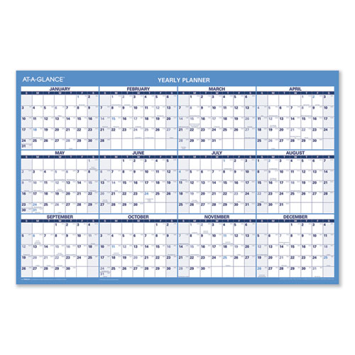 Horizontal Reversible/Erasable Wall Planner, 36 x 24, White/Blue Sheets, 12-Month (Jan to Dec): 2025