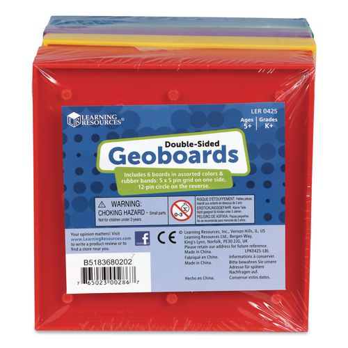 Double-Sided Assorted Geoboards, Grades K to 3, 5″ x 5″, Assorted Colors, 6 Pieces