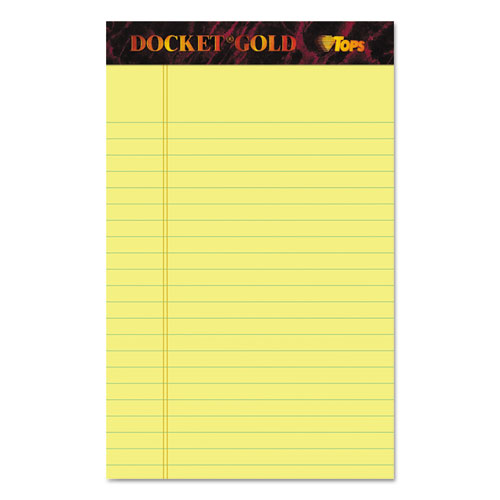 Docket Gold Ruled Perforated Pads, Narrow Rule, 50 Canary-Yellow 5 X 8 Sheets, 12/pack